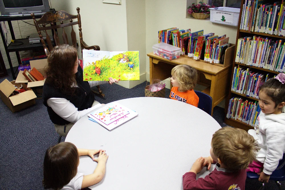 The library provides story hour for three and four-year-olds from September until school is out in May. Classes meet every Tuesday at 10:00 AM, except when school is out on breaks. We enjoy an hour of short films, music, crafts, snacks, and listening to books.