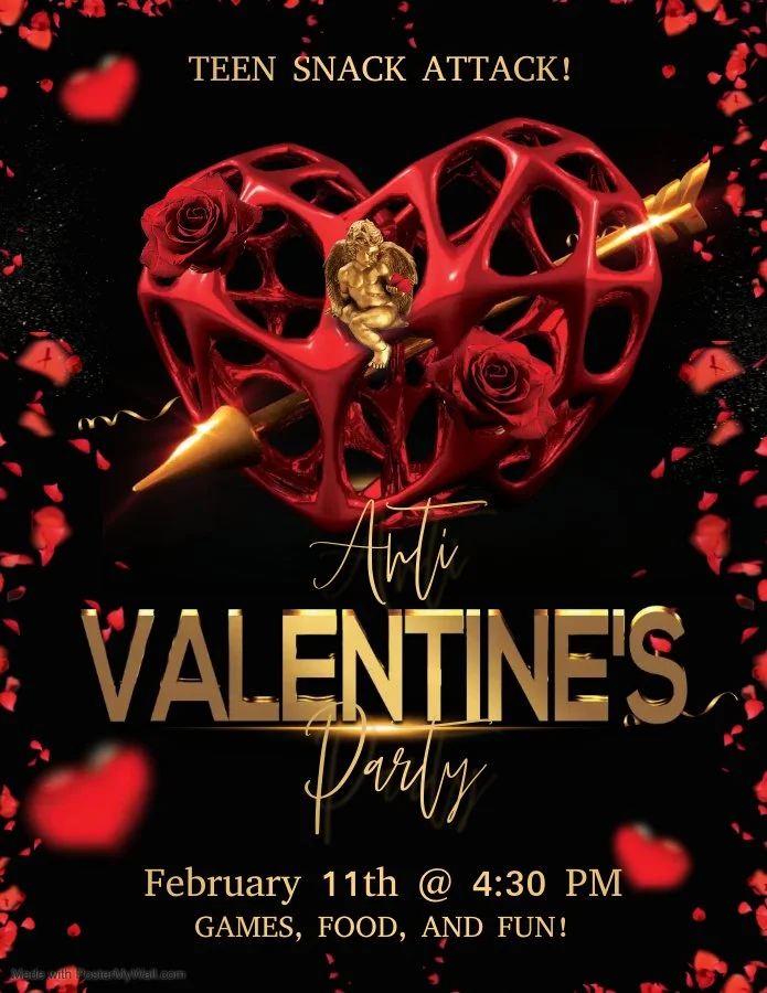 If Valentine’s Day is not your thing…come to our Anti-Valentine Party! Join us for food and fun in the Makerspace. We’ll bake broken heart cookies and play some games that definitely do not have anything to do with LOVE.