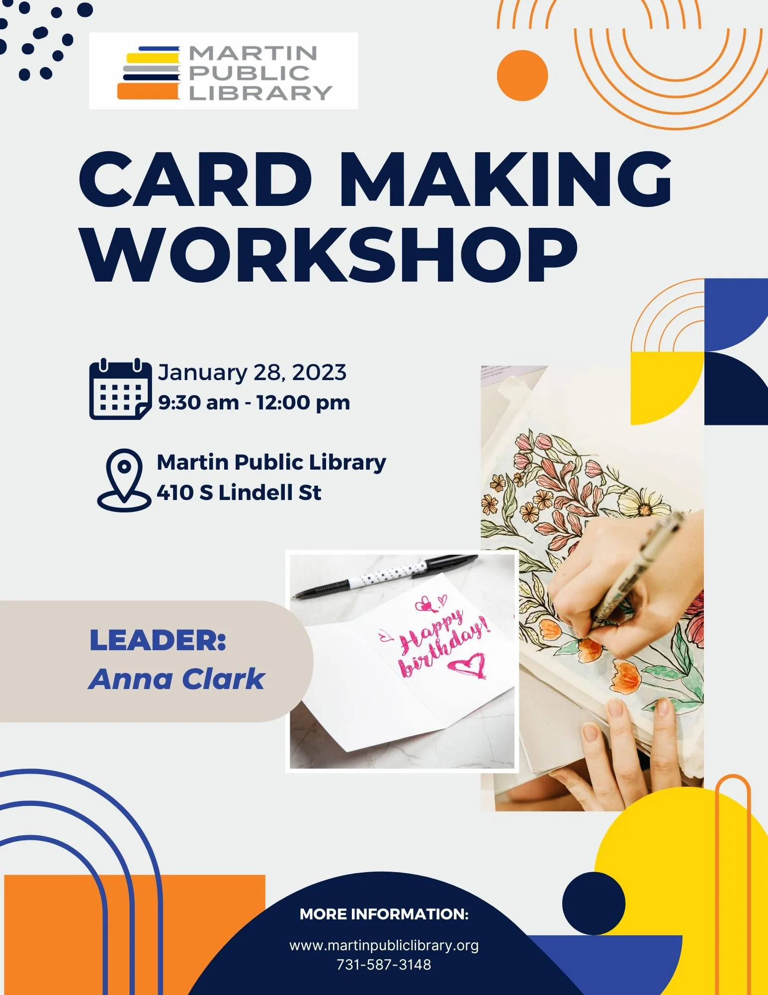 Join Anna Clark in the Makerspace to make bookmarks and cards.