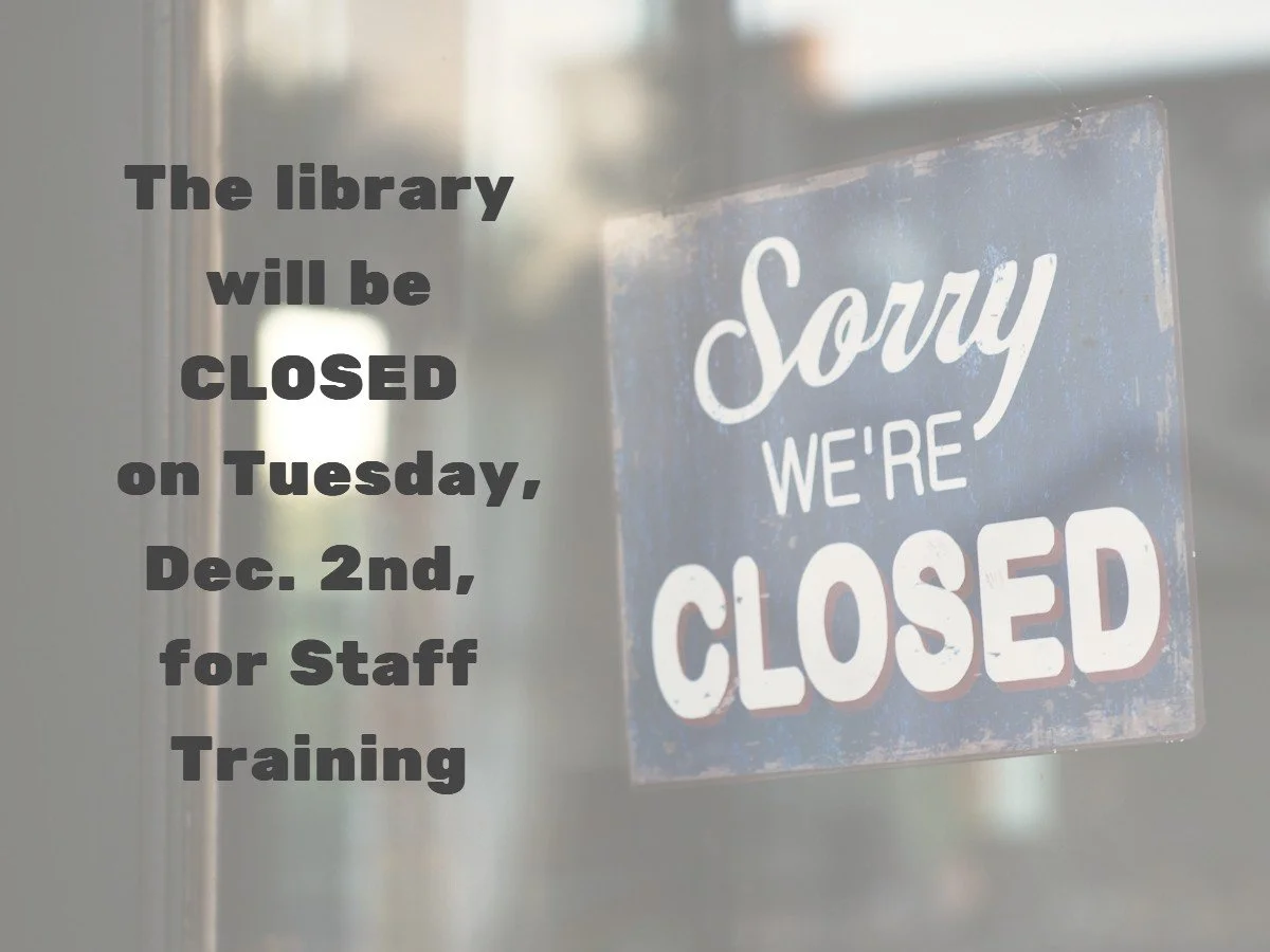 Library closed Tuesday, December 2, 2025 9:00 AM 5:30 PM 09:00 17:30 Martin Public Library 410 South Main Street Martin, TN 38237 (map) Google Calendar ICS The library will be closed for staff training.