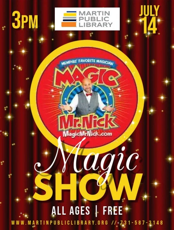 Magic lovers of all ages are invited to come and enjoy a spellbinding show fit for the whole family. Magic Mr. Nick will be here on Monday, July 14th at 3:00 PM. Prepare to be amazed with tricks, laughter, and jaw-dropping surprises. All ages are welcome!